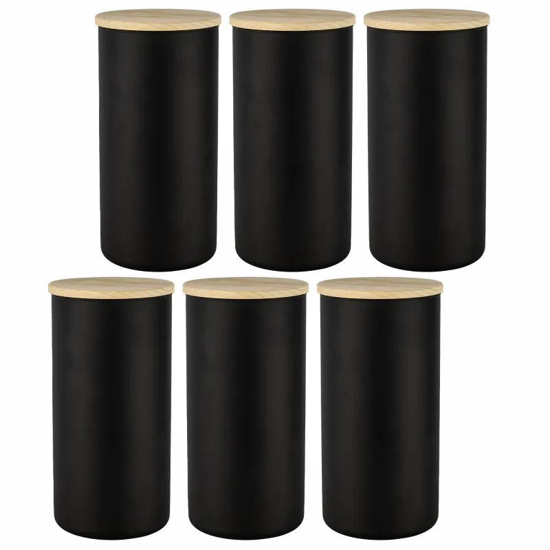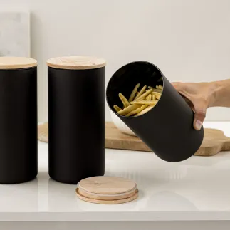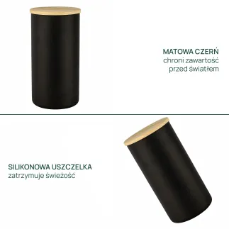 Pojemniki do przechowywania czarne matowe z deklem Nefeli Black&White 6 x 1385 ml
