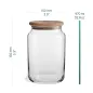 Korpus wykonany ze szkła zapewnia przejrzystość i pozwala w łatwy sposób kontrolować zawartość. Drewniana pokrywka z silikonową uszczelką chroni produkty przed utratą aromatu i wilgocią, a całość prezentuje się naturalnie i nowocześnie.
