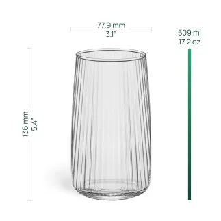 Wysokość 13,6 cm i średnica 7,79 cm czynią je ergonomicznymi i poręcznymi, a jednocześnie pozwalają cieszyć się większą porcją napoju bez konieczności dolewek. Ryflowanie nie tylko dodaje elegancji, ale poprawia chwyt – szklanka lepiej leży w dłoni. To idealny wybór do kuchni, jadalni czy ogrodu – pasują do wielu stylów aranżacyjnych.