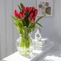 Projekt wazonu Amphora opiera się na lekkim zwężeniu w szyjce, co ułatwia układanie bukietów i zapobiega ich rozpadaniu. Delikatnie zaokrąglona bryła dodaje wizualnej miękkości, dzięki czemu szklany wazon dobrze komponuje się zarówno z nowoczesnymi, jak i bardziej klasycznymi meblami czy dodatkami. Bezbarwne szkło odbija światło w naturalny sposób, eksponując łodygi i wodę, co może stanowić dodatkowy walor dekoracyjny – szczególnie w przypadku bukietów o interesującej strukturze.